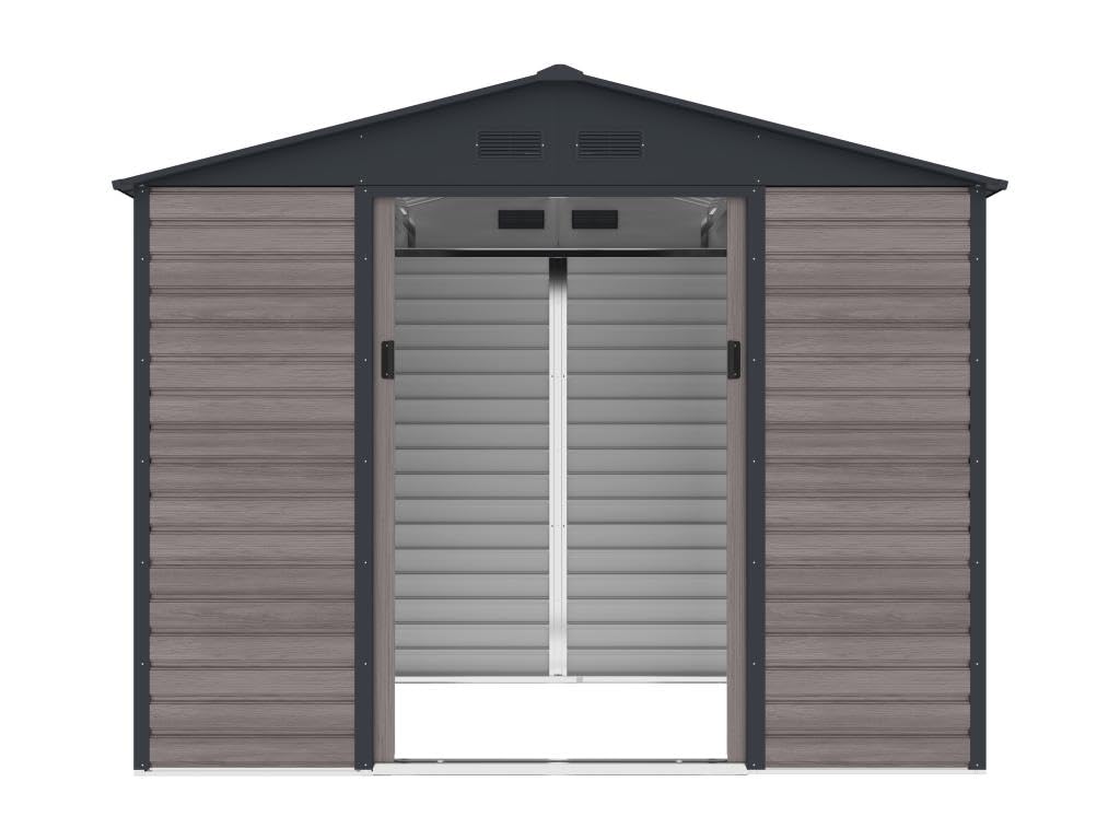 Notre élégant abri de jardin métal ADELMO sera parfait ! Vous pourrez facilement y ranger votre mobilier de jardin, vos vélos, votre tondeuse ou bien encore vos outils de bricolage. Grâce à son aspect bois, il apportera une touche de modernité à votre jardin et s’y intègrera parfaitement !Caractéristiques Couleur (nuance) : Naturel foncé, Gris anthracite Matière : Acier Epaisseur métal : 0.25 mm Finition : Galvanisé Surface (m2) : 4.83 m2 Surface hors tout (m2) : 5.4 m2 Type de porte : Porte double Système d’ouverture : Coulissant Type de toit : double pente Poids maximum supporté par le toit : 60 kg/m2 Nombre de fenêtres : 1 Equipement inclus : Poignée, Grille d’aération Produit exclusif France : Equipement inclus : Fenêtre : Législation : Abri < 20m2 : une déclaration préalable de travaux suffitDimensions Longueur : 267 cm Hauteur : 221 cm Profondeur : 181 cm Longueur porte : 117 cm Hauteur porte : 181 cm Longueur hors tout : 277 cm Hauteur hors tout : 221 cm Profondeur hors tout : 195 cmEXPERTLANDSpécialiste de l’équipement et de l’aménagement extérieur, Expertland vous propose une sélection qualitative et variée de portails, serres, abris, gazons synthétiques et bien d’autres encore !