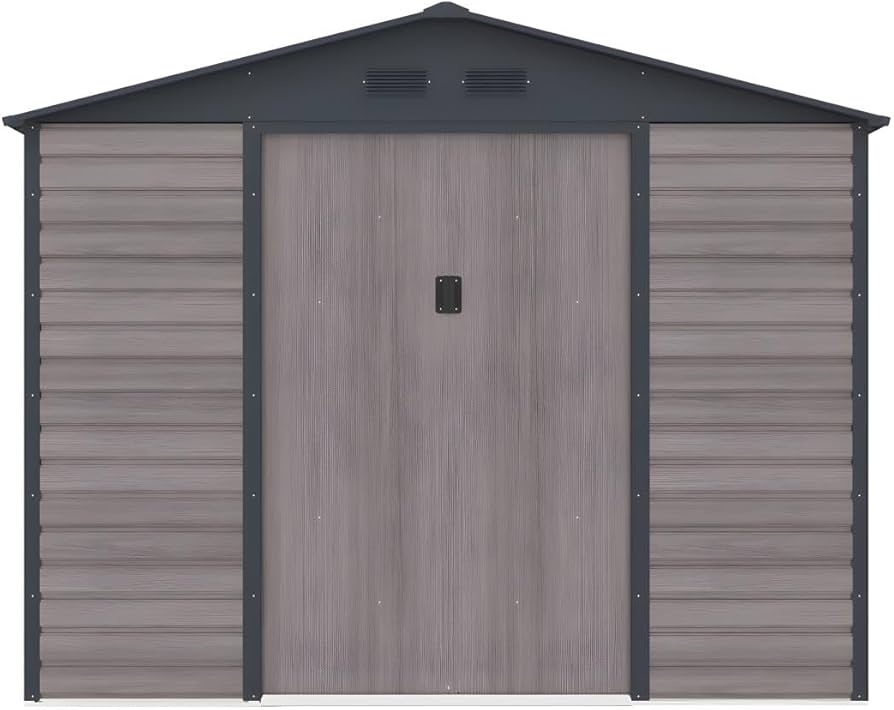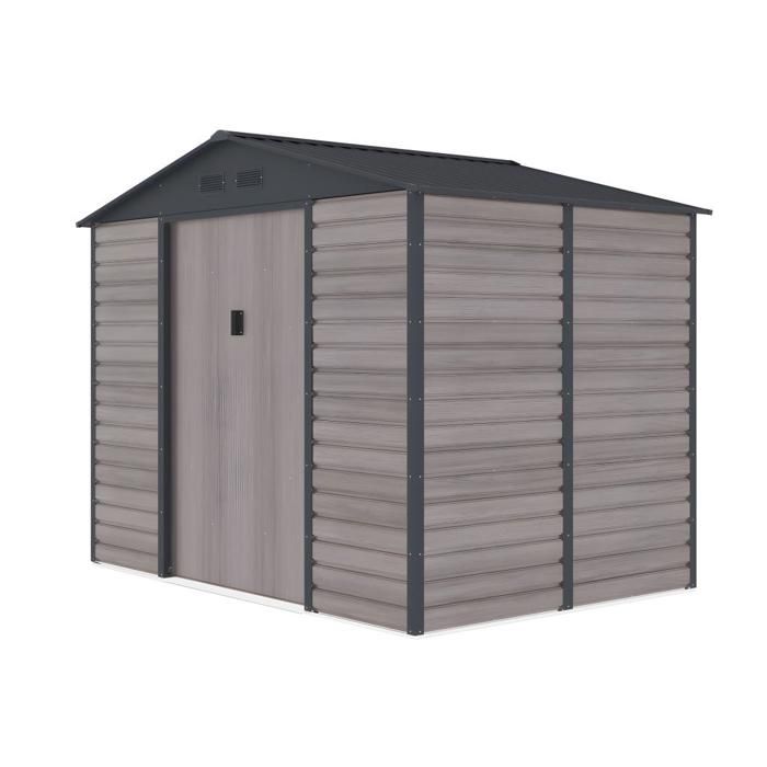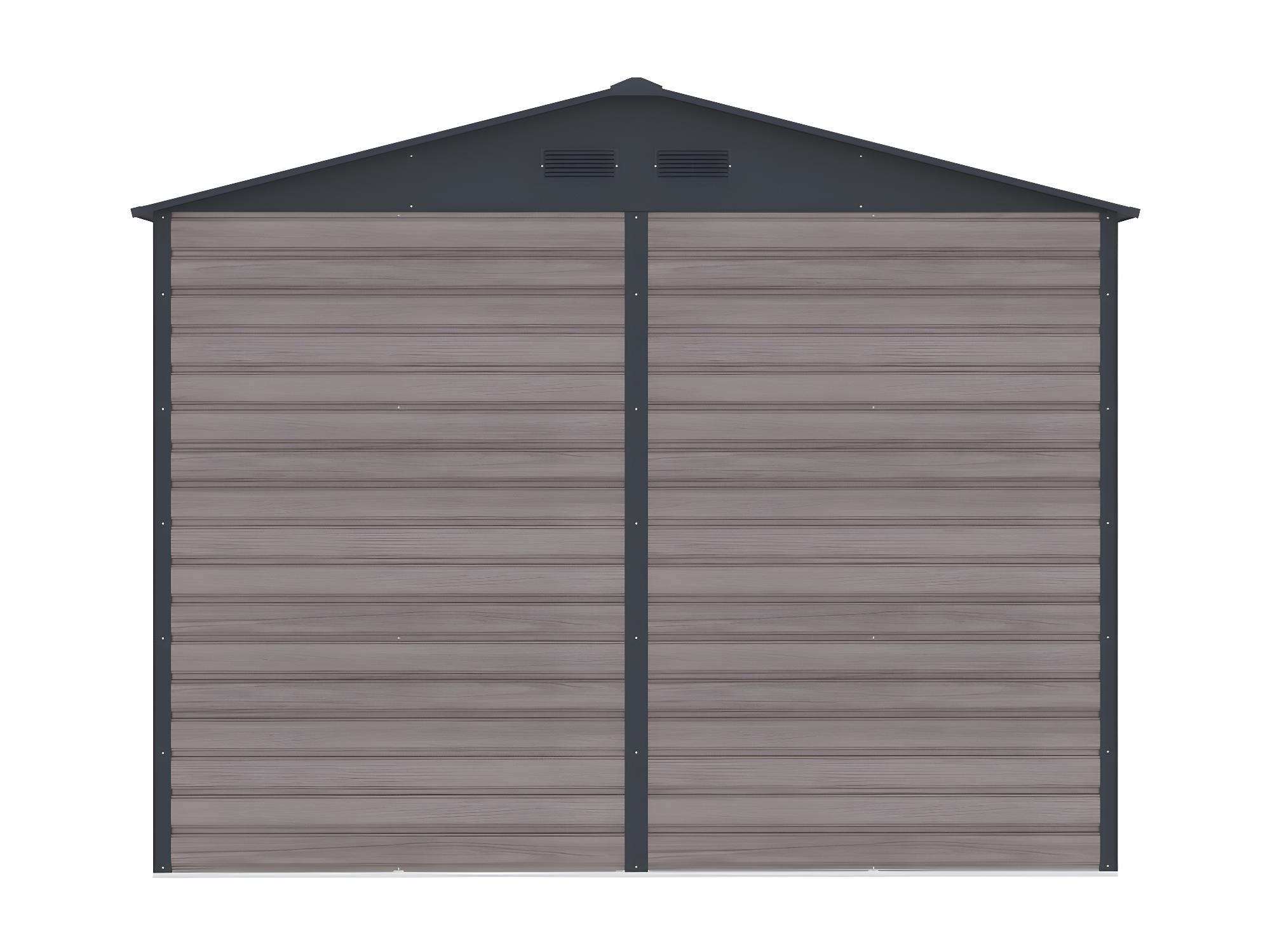 - Abri de jardin métal en acier galvanisé effet bois gris 5,40 m2 ADELMO, double porte, lucarne, bouche d’aération, double toit, toit incliné, évacuation pluie, poignées, robuste, design