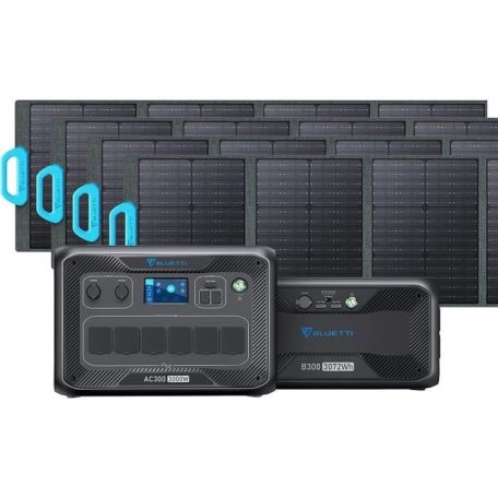 BLUETTI Générateur électrique AC300&B300 batterie supplémentaire,avec 4 panneaux solaires PV120, 3072Wh groupe électrogène solaire